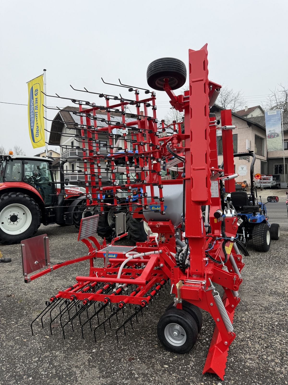6m Arbeitsbreite, hydr. klappar, 4 Striegelfelder mit hydr. Niveauausgleich, 490mm Zinken mit 10mm Durchmesser, Sägerät mit elekt. Antrieb, P-Box-STI, Säwalze mit elektr. Antrieb, STI Steuerung 2.0, Füllstandssensor, Warntafeln mit Beleuchtung, Rück-, Brems- und Blinklichter in LED Ausfürung, Baujahr 2025