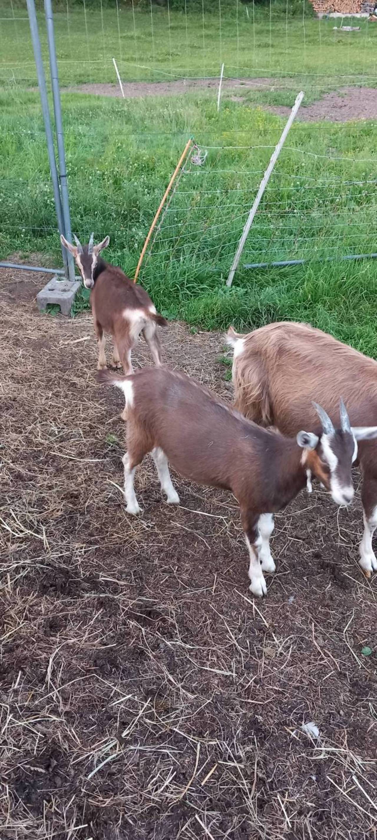 Habe noch weibliche Ziegen abzugeben, Pinzgauer oder Pinzgauer/Toggenburger Kreuzungen, ideal zum Schwenden, Melken und Fleisch. Sind Pseudo, CAE und MTBC frei. Verkauf auch nach DE möglich.