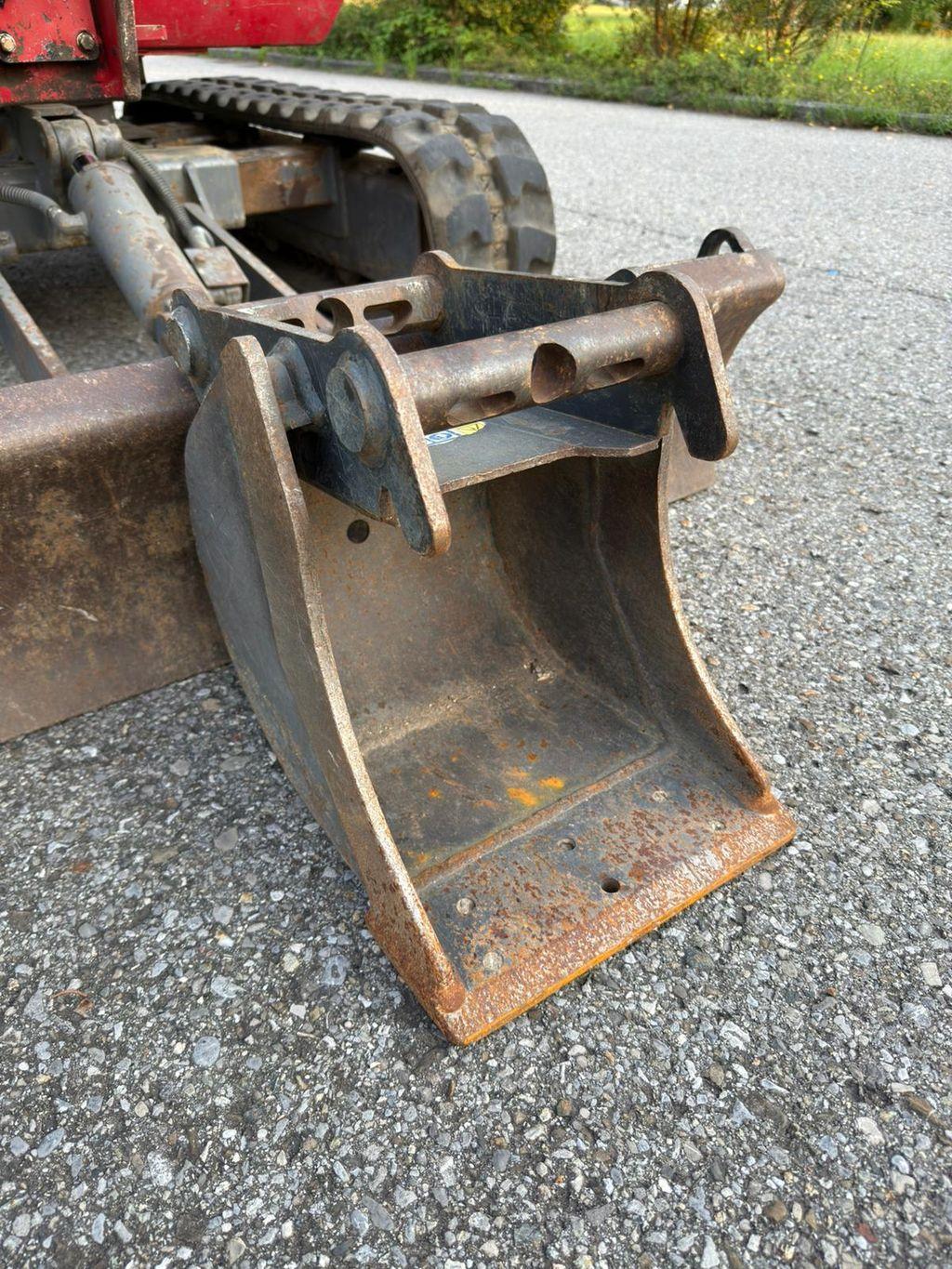 Takeuchi TB 016 mit Schnellwechsler, Böschungslöffel und einem schmalen Löffel. Es wurde gerade frisch ein Service in einer Fachwerkstätte durchgeführt. Motorenöl mit Ölfilter, Wasserabscheider und Dieselfilter erneuert, Luftfilter erneuert, Fahrwerksgetriebeöl erneuert, Hydraulikölfilter erneuert. Armsystem hat fast kein Spiel, Ketten sind in einem neuwertigen Zustand. Maschine ist komplett dicht, trocken und einsatzbereit. LED-Scheinwerfer am Armsystem und Kabinendach. Bj. 2013, 3.090 Bstd. Gegen einen kleinen Aufpreis gäbe es noch einen breiten Tiefgrabenlöffel oder einen hydr. schwenkbaren Böschungslöffel. Privatverkauf, keine Gewährleistung oder Garantie. Bitte melden.